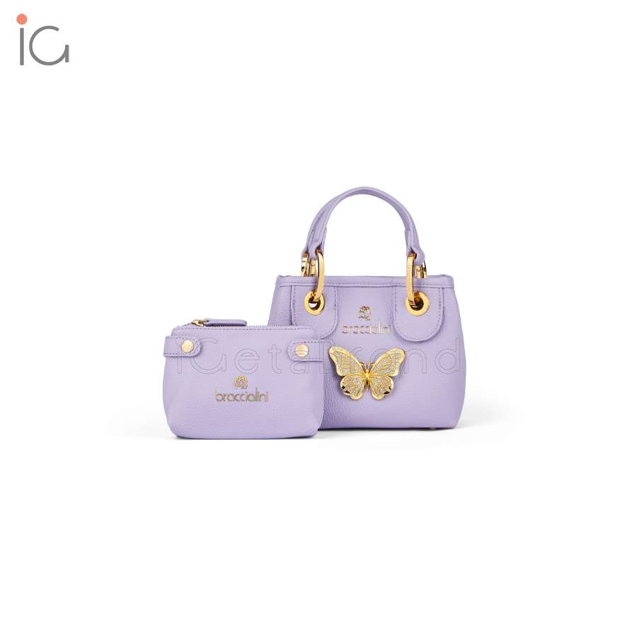 Collection 2024 FW.  Manufacturer: Braccialini.  Line: Beth Jewels.  Functionality: handbag.  Material: Polisynt.  Color: violet.  Handle: double with removable and adjustable cross-body strap.  Bag interior: two inside pockets, one with zip and one open.  Dimensions: 18x15x7 cm.  Height of handle: 11 cm.  Weight: 0.5 kg.